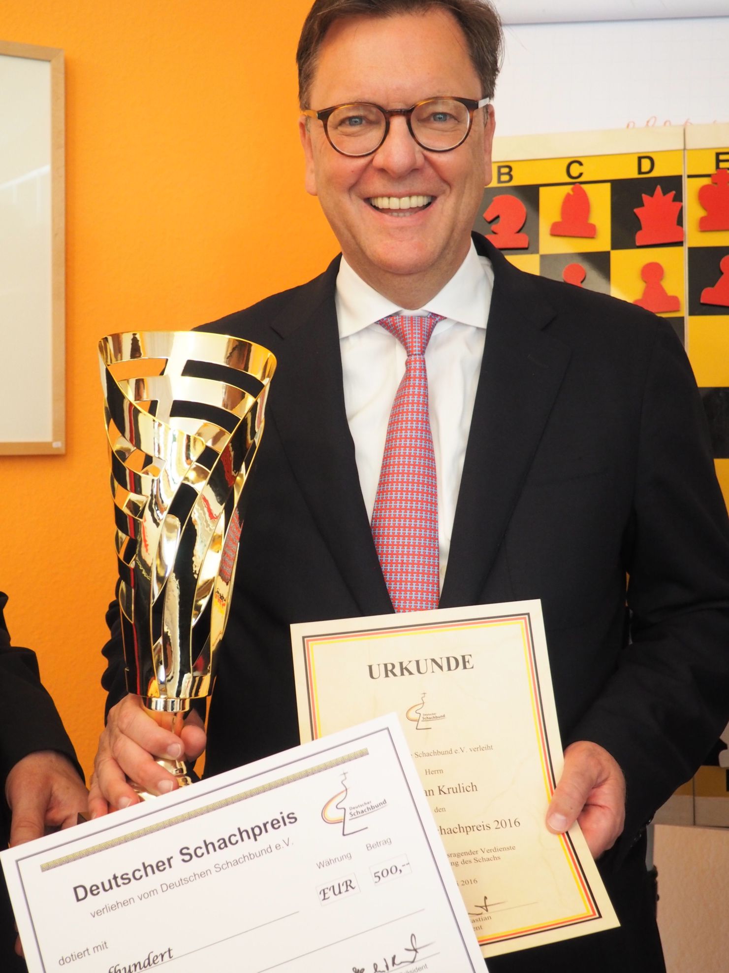 Roman Veröffentlicht am 17. Juni 2016 in Ehrung unseres größten Förderers.Volle Auflösung (1481 × 1975) ← Zurück Weiter → Roman Krulich mit dem Deutschen Schachpreis 2016