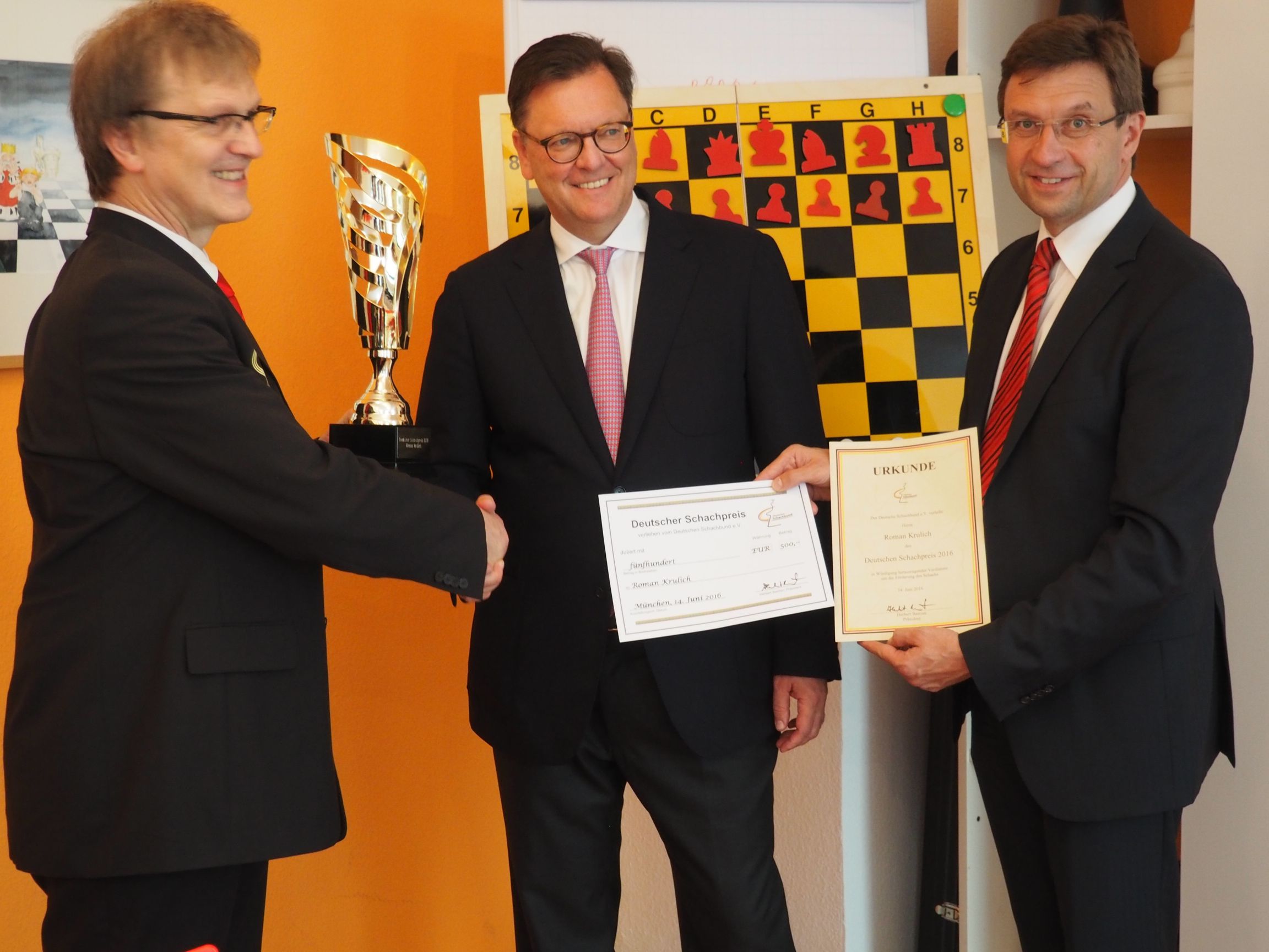 Übergabe Veröffentlicht am 17. Juni 2016 in Ehrung unseres größten Förderers.Volle Auflösung (2304 × 1728) ← Zurück Übergabe durch den Präsidenten des Deutschen Schachbundes Herbert Bastian