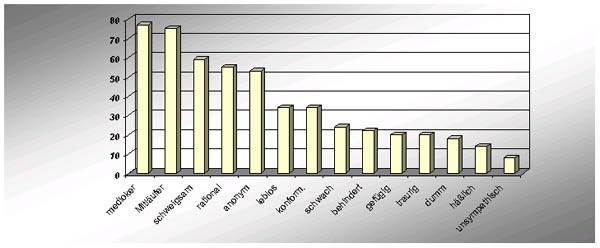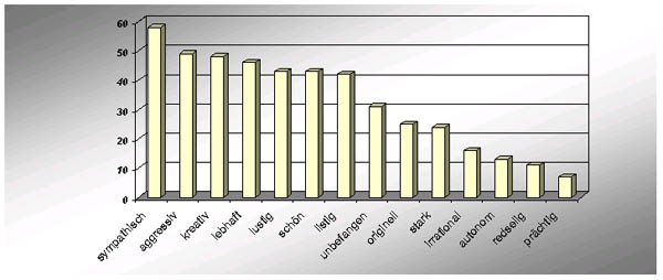44 verschiedene Fragen wurden gestellt, die zum Teil assoziativen (z.B.: Wie